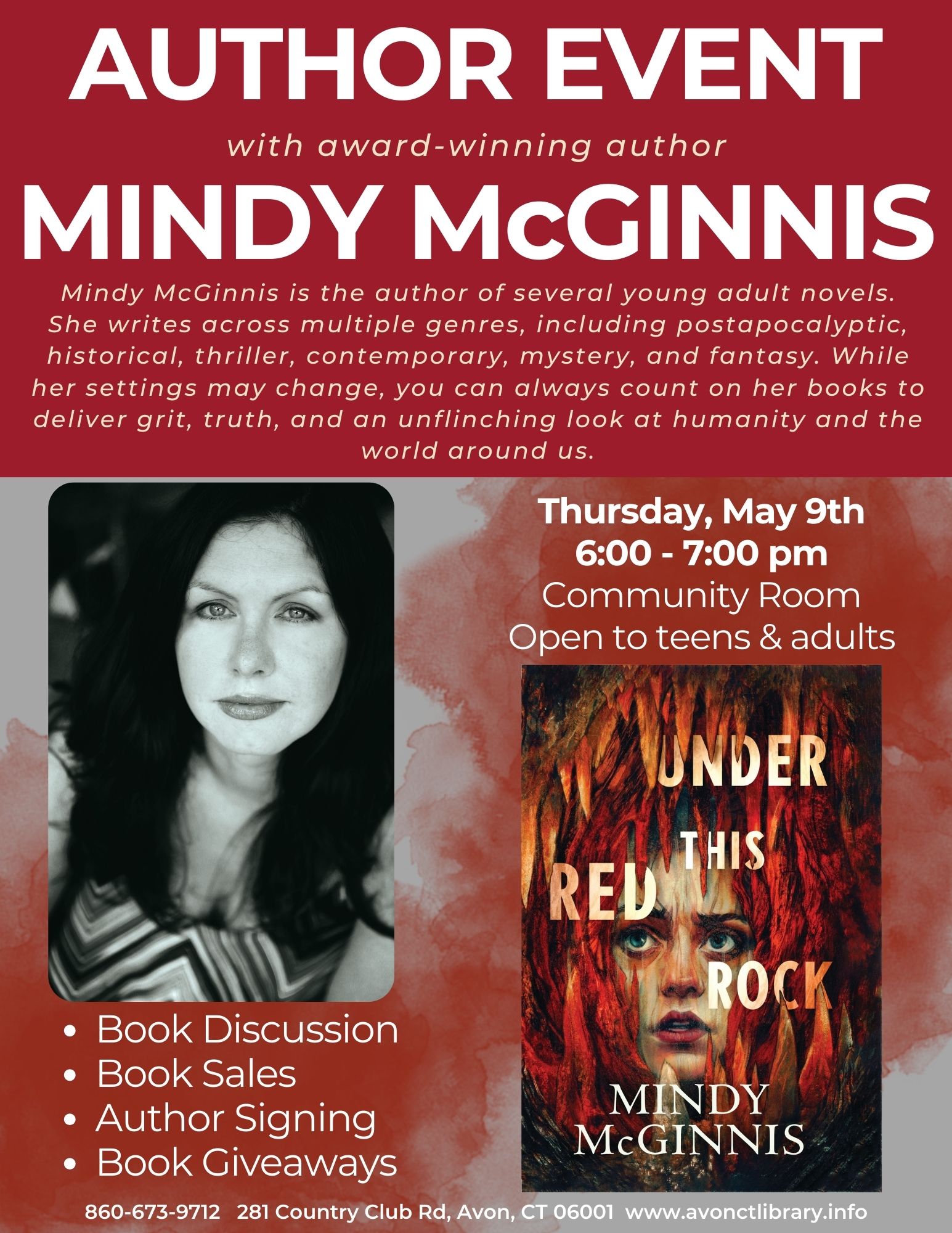 Join us in welcoming award-winning author Mindy McGinnis to discuss her latest novel Under This Red Rock. We will be selling copies of Under This Red Rock as well as copies of some of Mindy’s other Young Adult novels. Mindy will be available for book signing after the event!