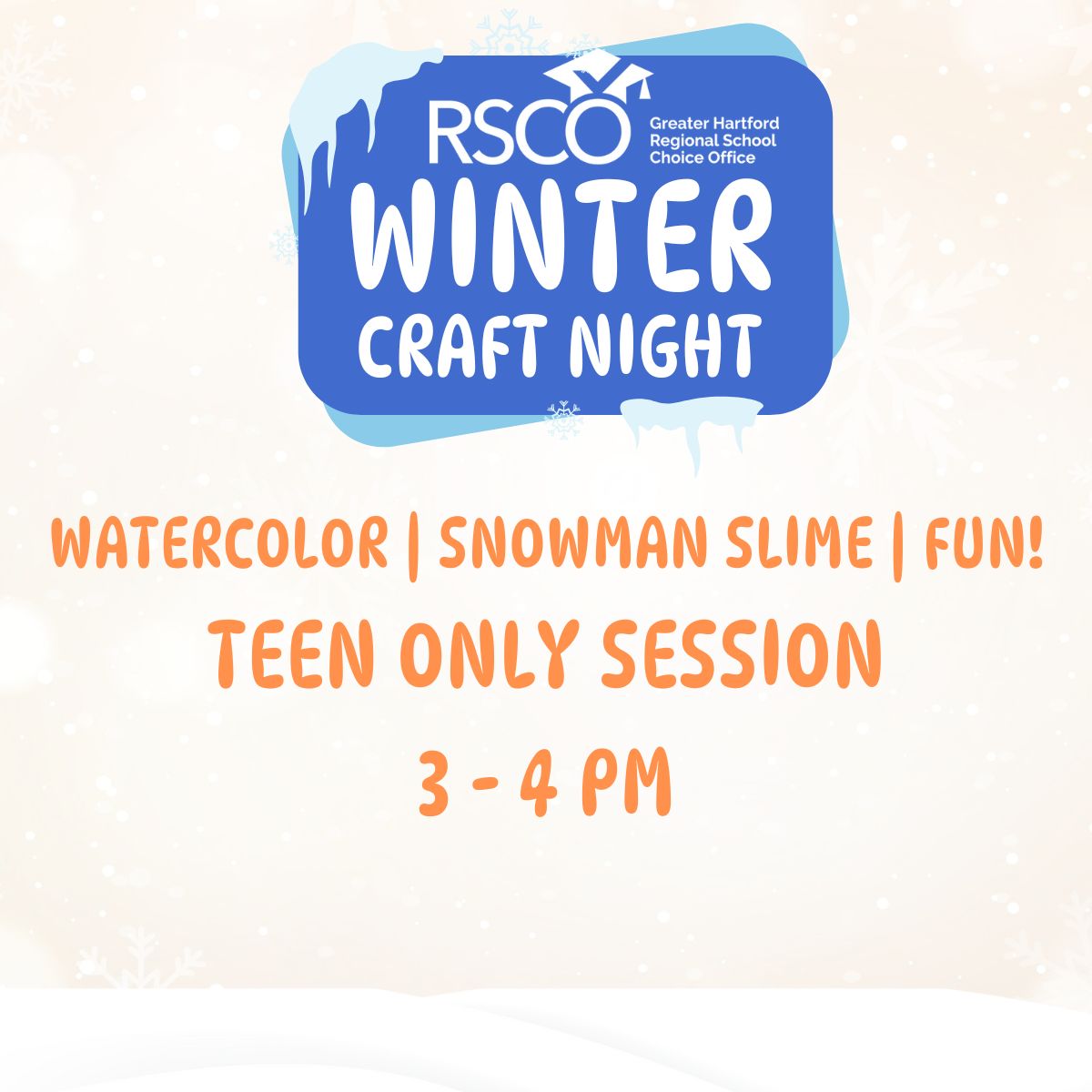 Join the Regional School Choice Office (RSCO) for an evening of winter crafts, including guided painting and making snowman slime!