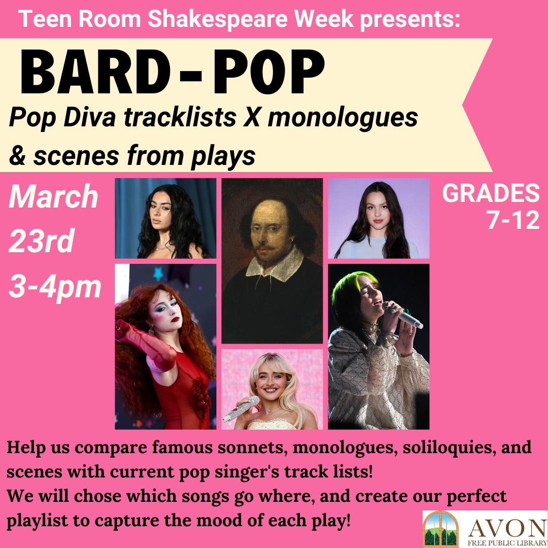 International Shakespeare Week runs March 23-29, and we are joining the fun with three programs this week!