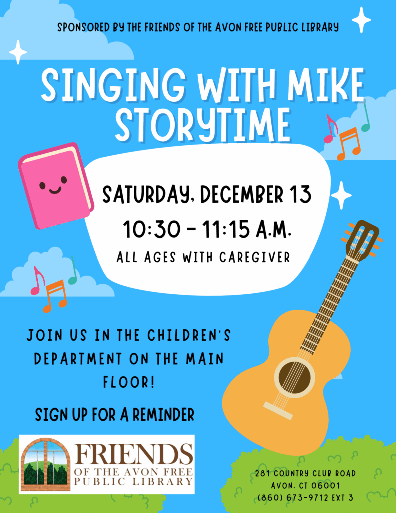 Join special guest Mike for a fun time singing classic kids songs and learning songs! Saturday, December 13th on the Main Floor of the Children’s Department For children of all […]